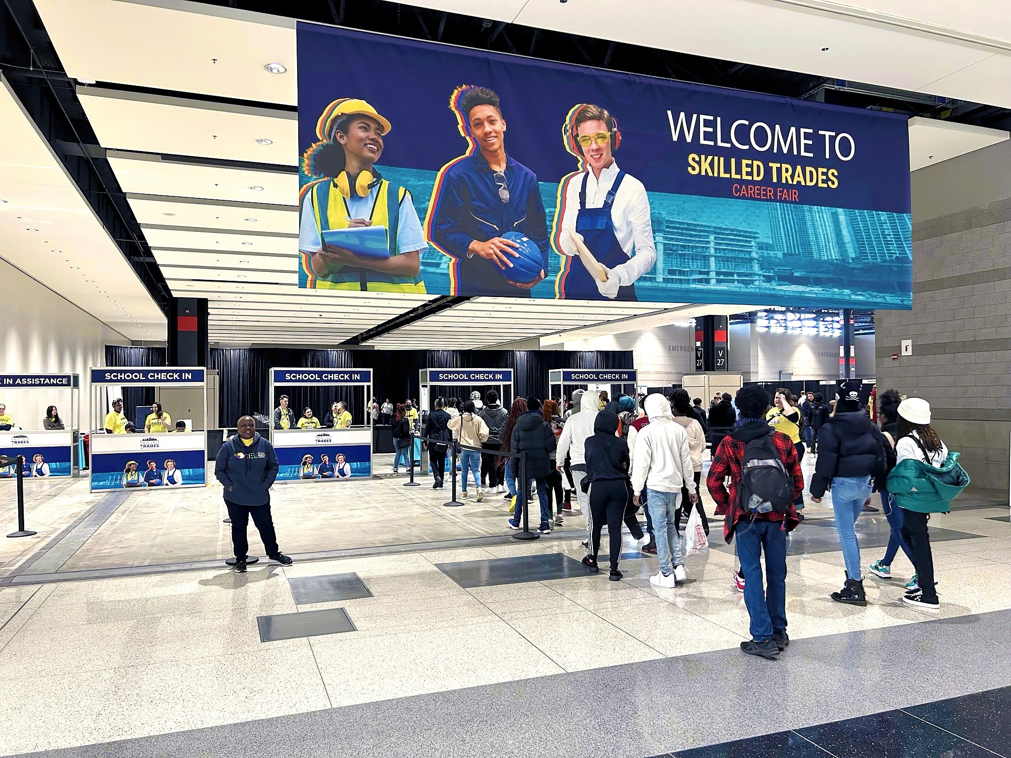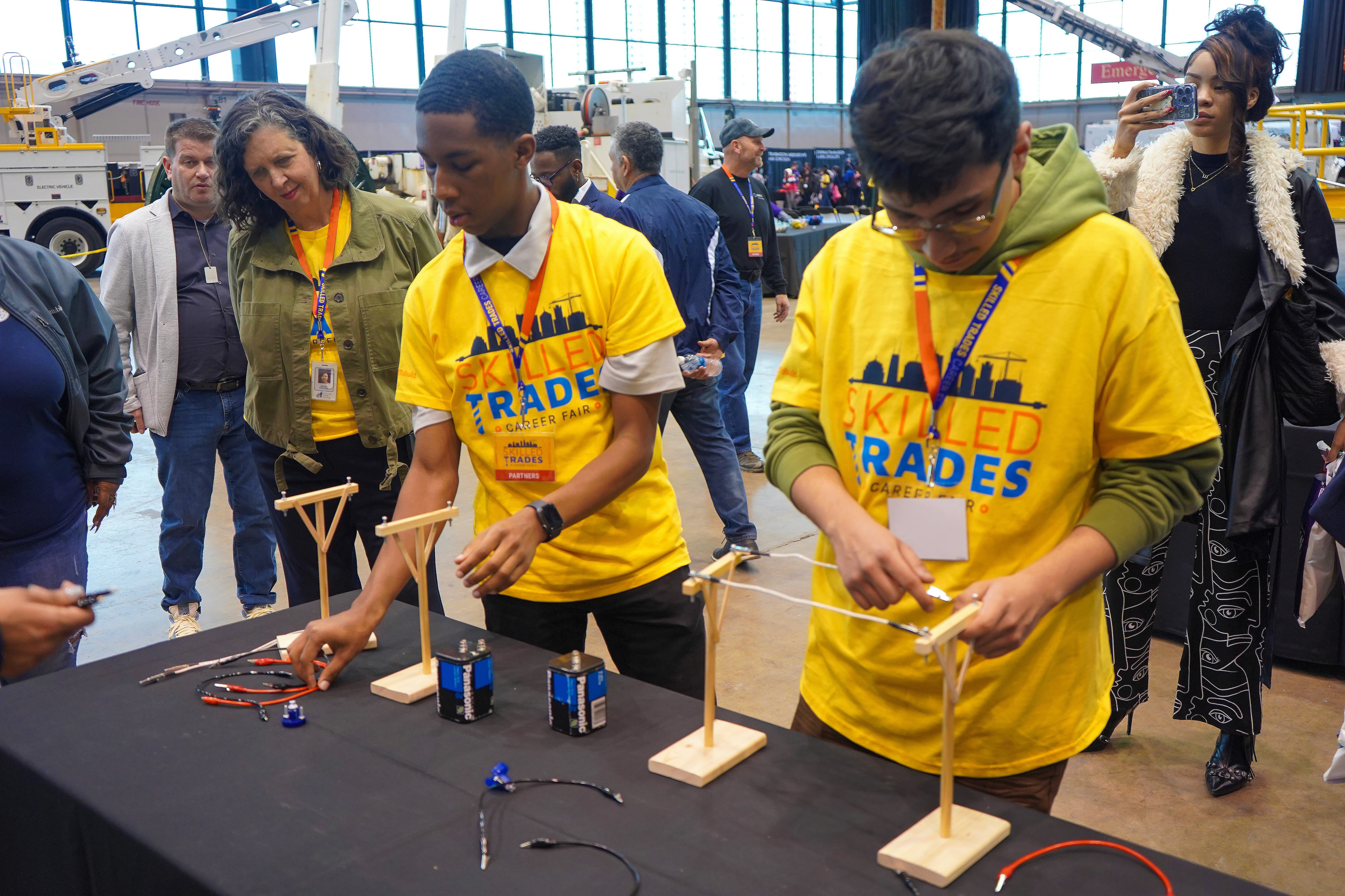 In collaboration with CPS, city agencies, the Children First Fund, and various labor and corporate partners, more than 3,000 high school students had the chance to explore career paths in architecture, STEM (Science, Technology, Engineering, and Math), the construction trades, and many additional fields at the Skilled Trades Fair.